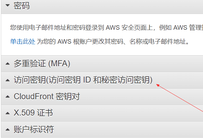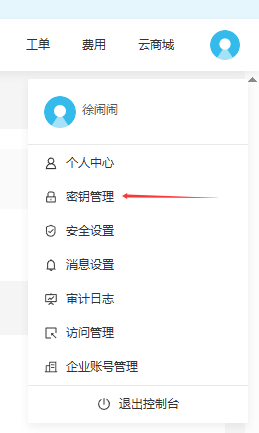 2、后台右上角鼠标移动到用户,然后点击AccessKey。
