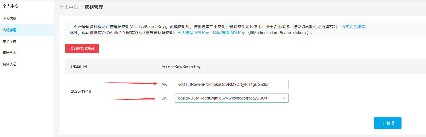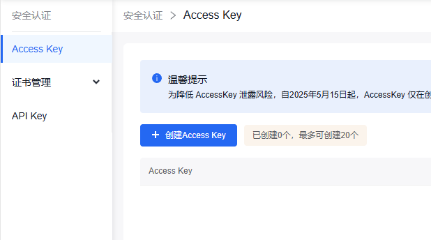 3、创建:Access Key,地址:https://console.bce.baidu.com/iam/#/iam/accesslist