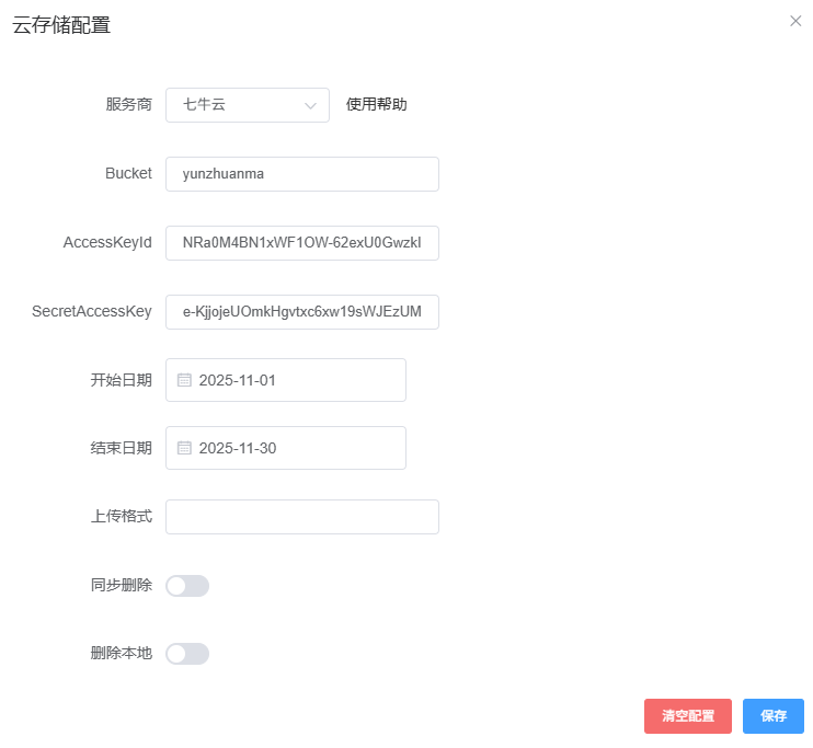 其他三个设置项一般使用云存储的都能看懂,就不用多解释了。